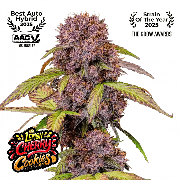Lemon Cherry Cookies Auto from Fast Buds is an indica-leaning autoflower with bold colour, rich flavour, and a quick finish. Bred from Purple Lemonade Auto, Cookies Auto, and Cherry Cola Auto, it brings together modern dessert-style terpenes with a sturdy, compact plant shape. As a result, growers get a strain that looks striking in the grow room and stays easy to handle from start to finish.